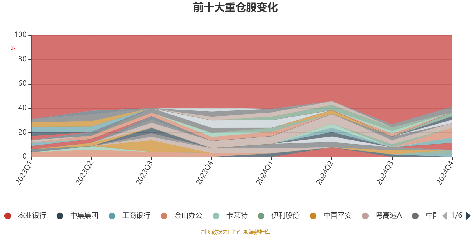 截至2024年四季度末,基金十大重仓股分别是中国移动、江苏银行、恒瑞医药、上海银行、长江电力、招商公路、工商银行、申能股份、青岛港、伊利股份。