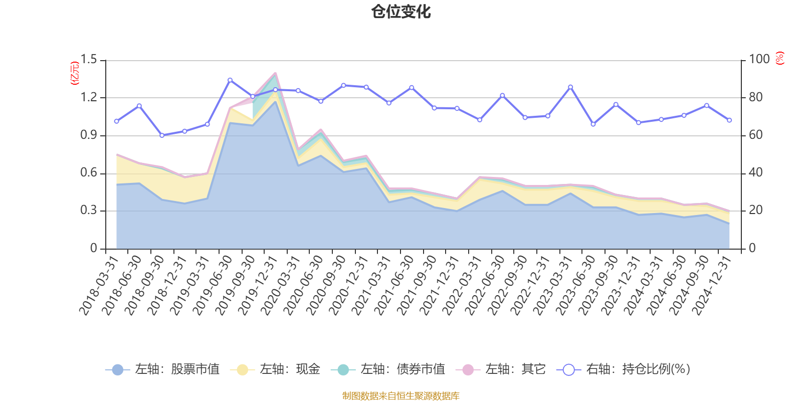 据定期报告数据统计,近三年平均股票仓位为72.38%,同类平均为83.32%。2019年上半年末基金达到89.44%的最高仓位,2018年三季度末最低,为60.14%。